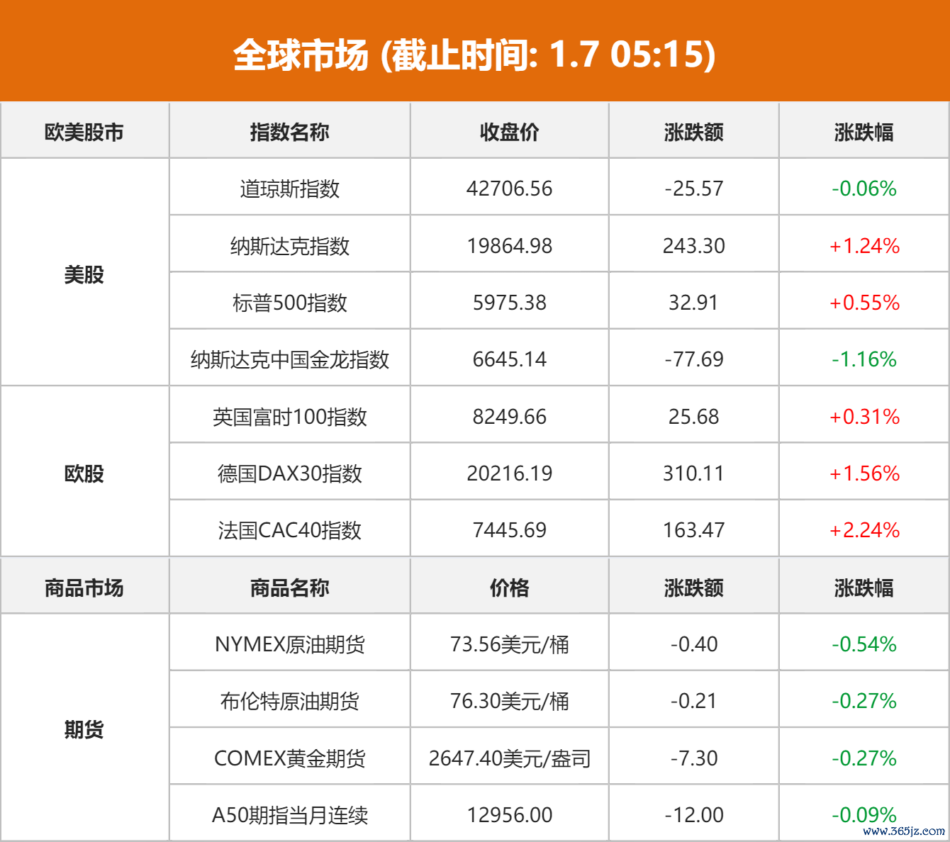 国际原油:纽约商品交易所2月交货的轻质原油期货价格下跌40美分,收于每桶73.56美元,跌幅为0.54%;3月交货的伦敦布伦特原油期货价格下跌21美分,收于每桶76.30美元,跌幅为0.27%。